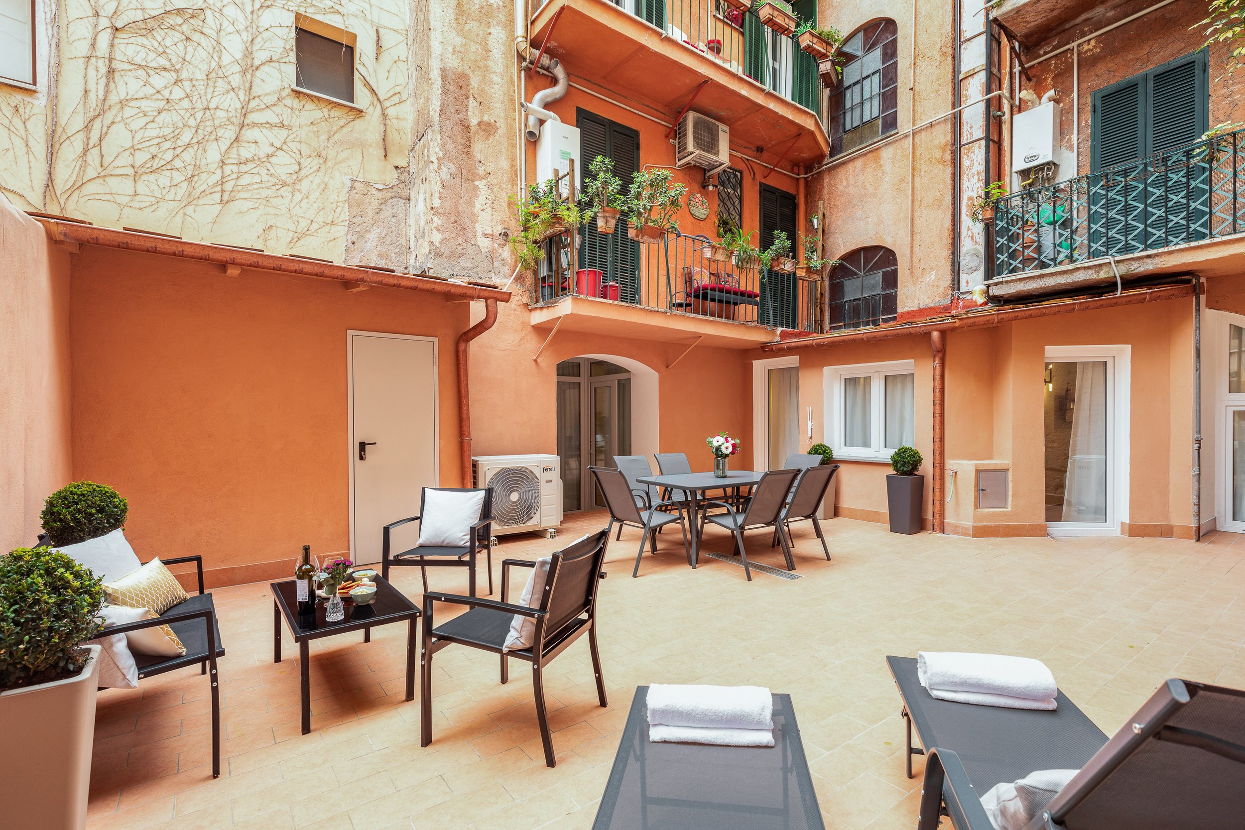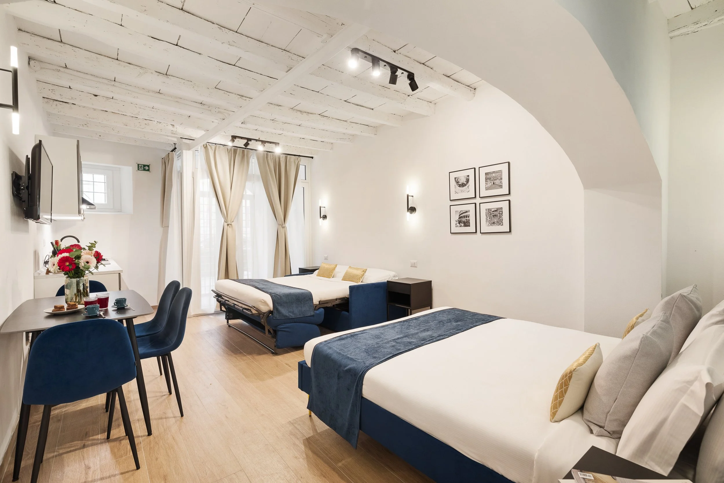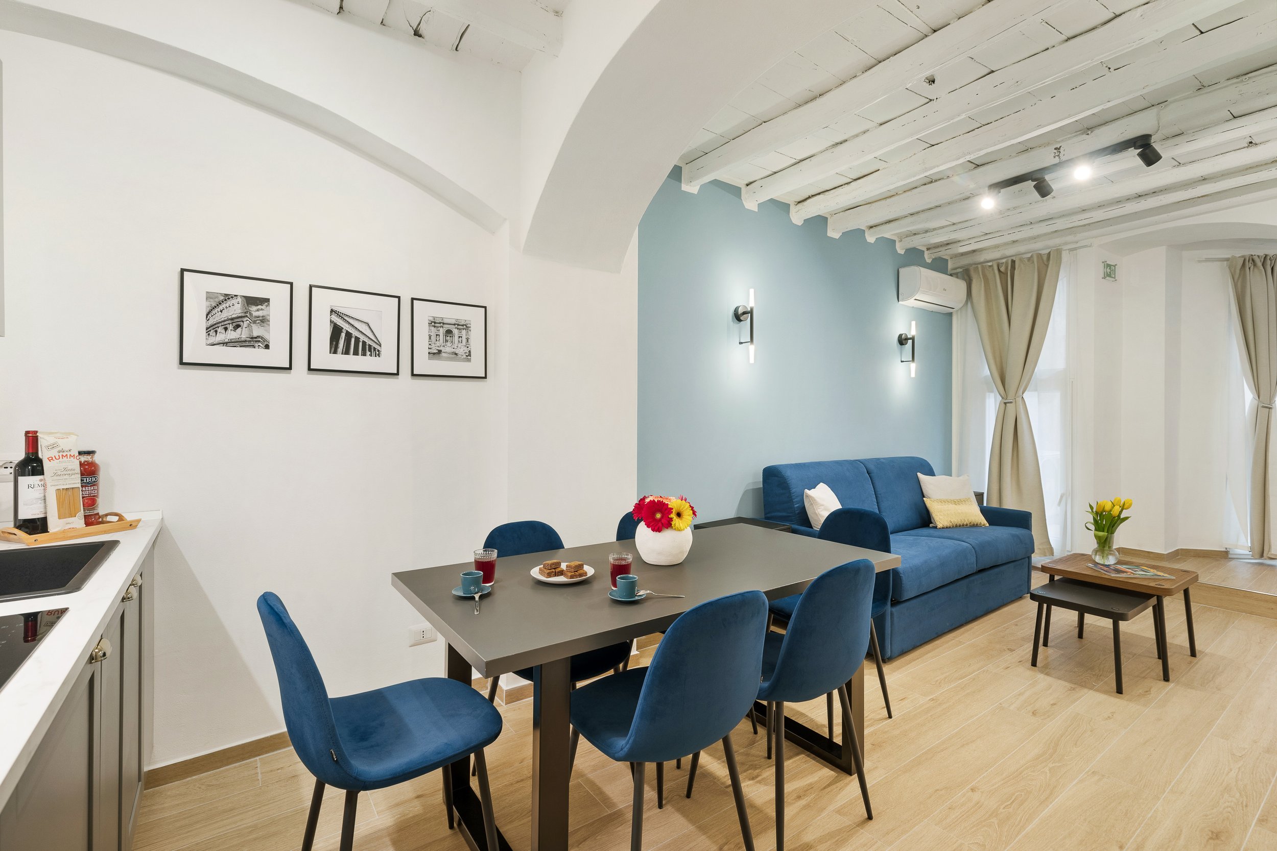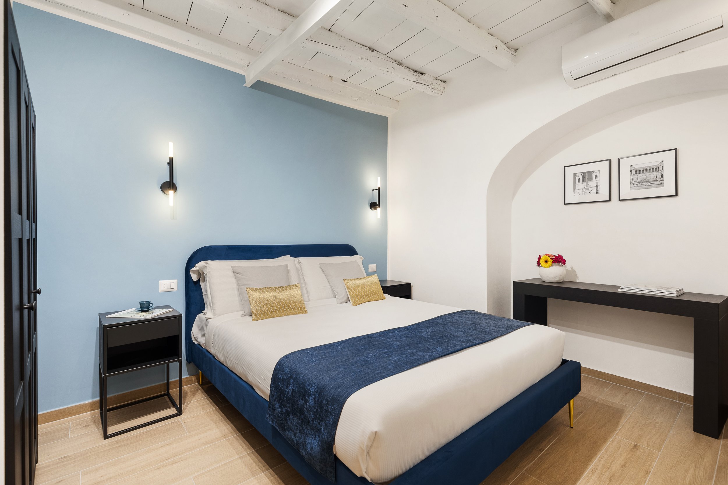 Una delle tre unità dispone anche di una terrazza privata, uno spazio intimo dove godersi un aperitivo o una colazione all’aria aperta, sotto il cielo di Roma. Un dettaglio che rende il soggiorno ancora più speciale.