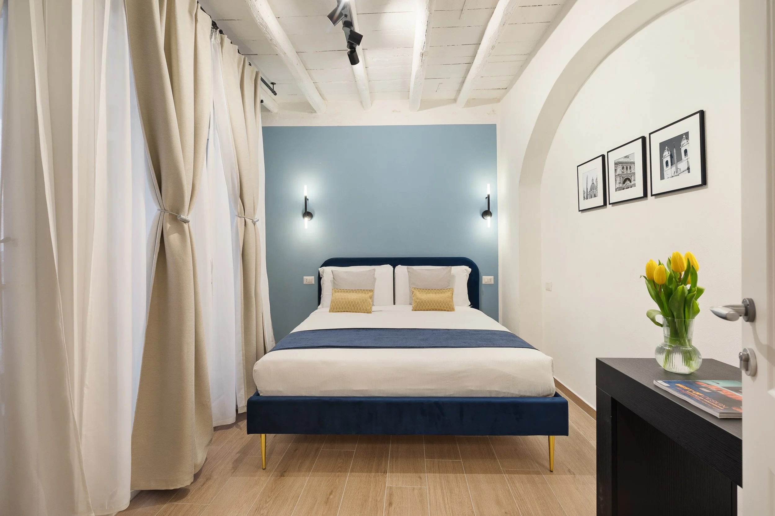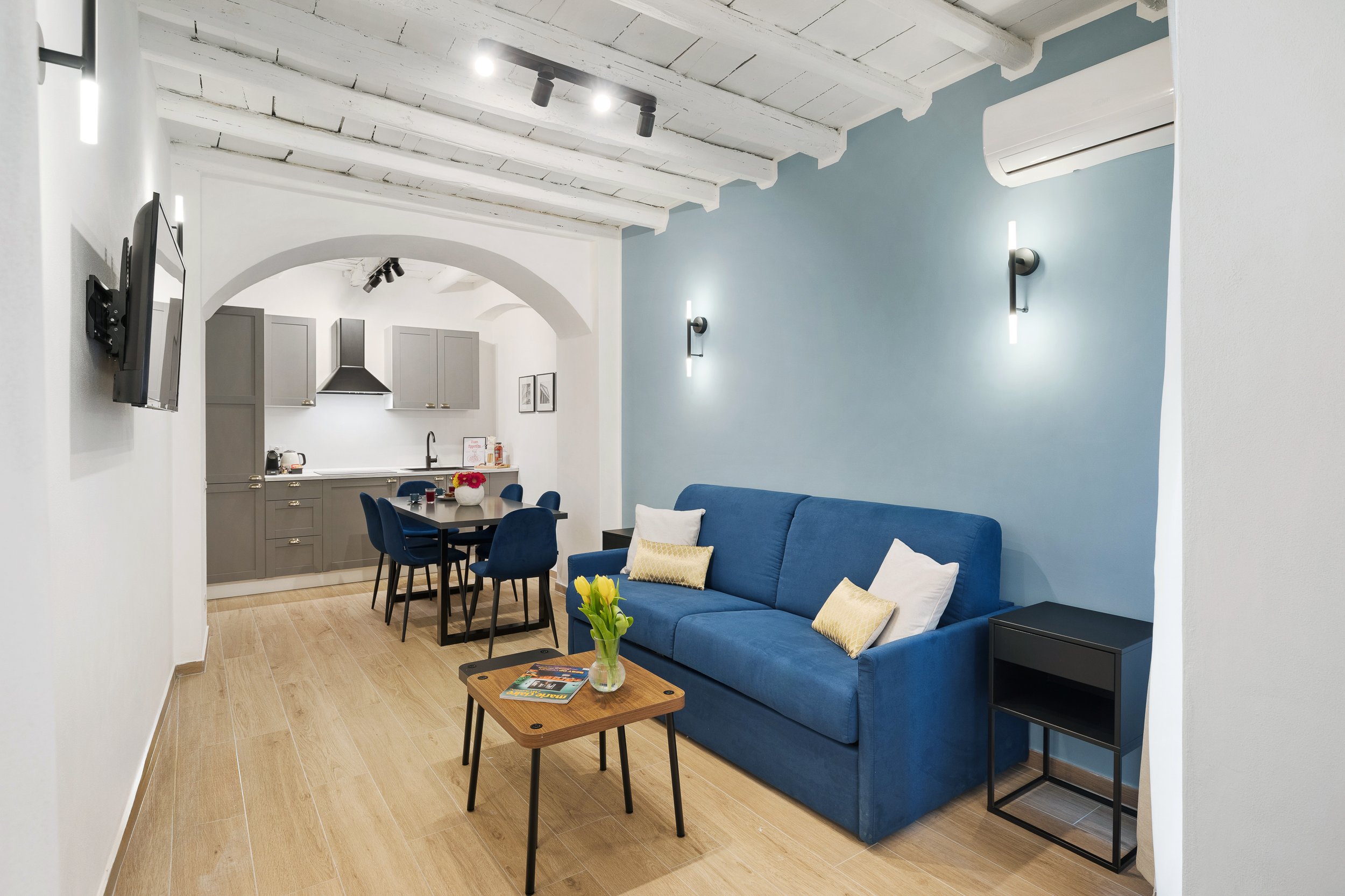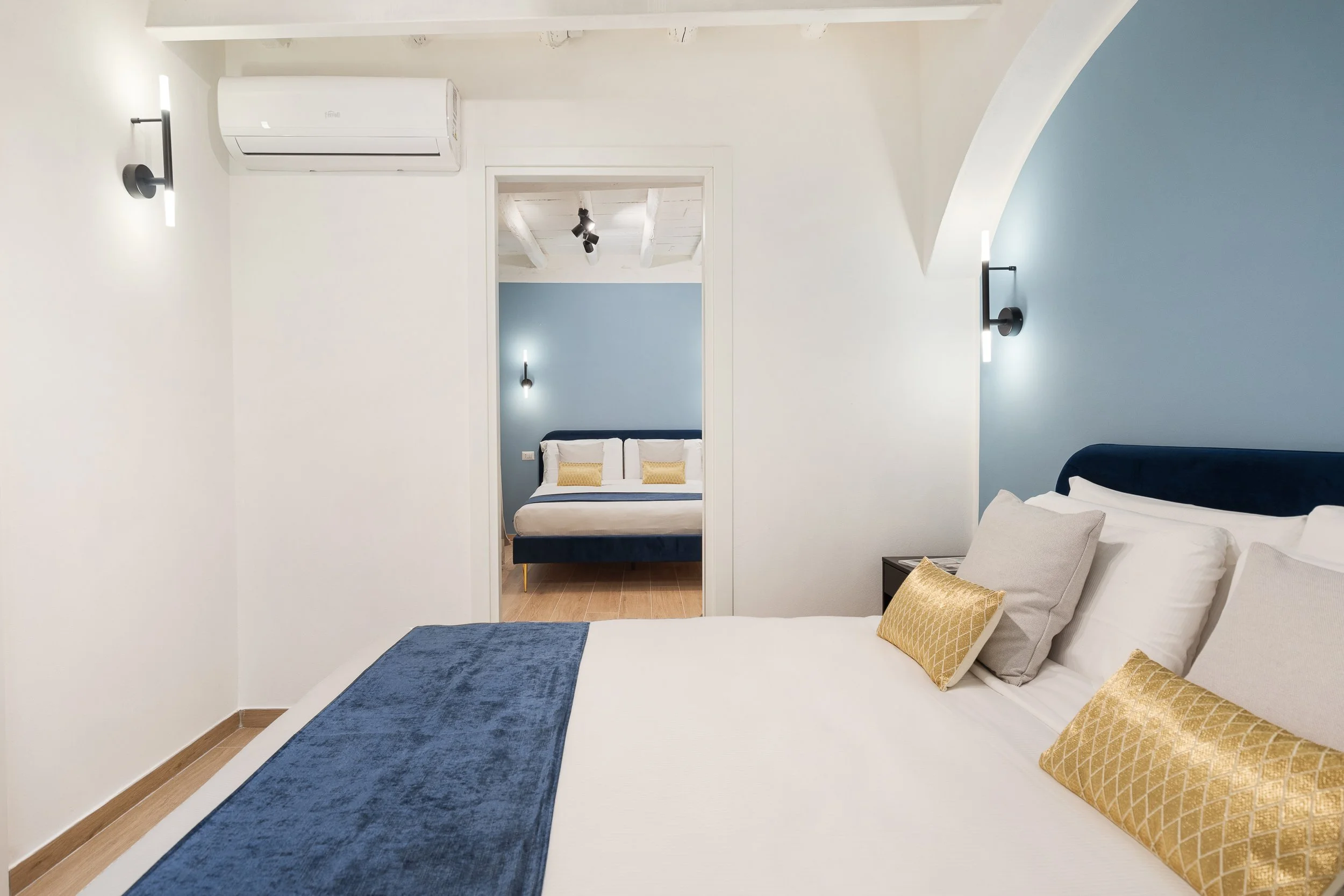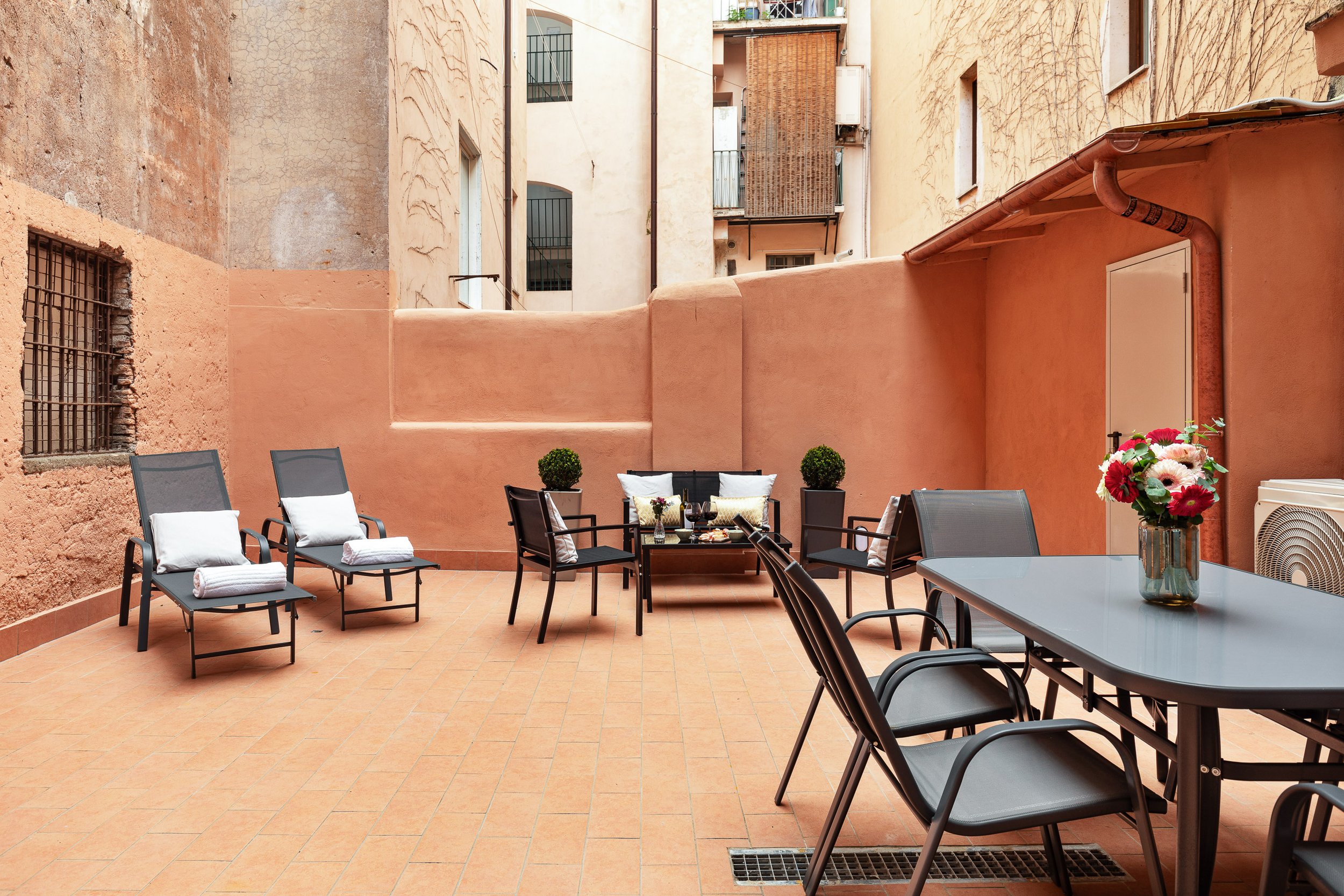 Una delle tre unità dispone anche di una terrazza privata, uno spazio intimo dove godersi un aperitivo o una colazione all’aria aperta, sotto il cielo di Roma. Un dettaglio che rende il soggiorno ancora più speciale.