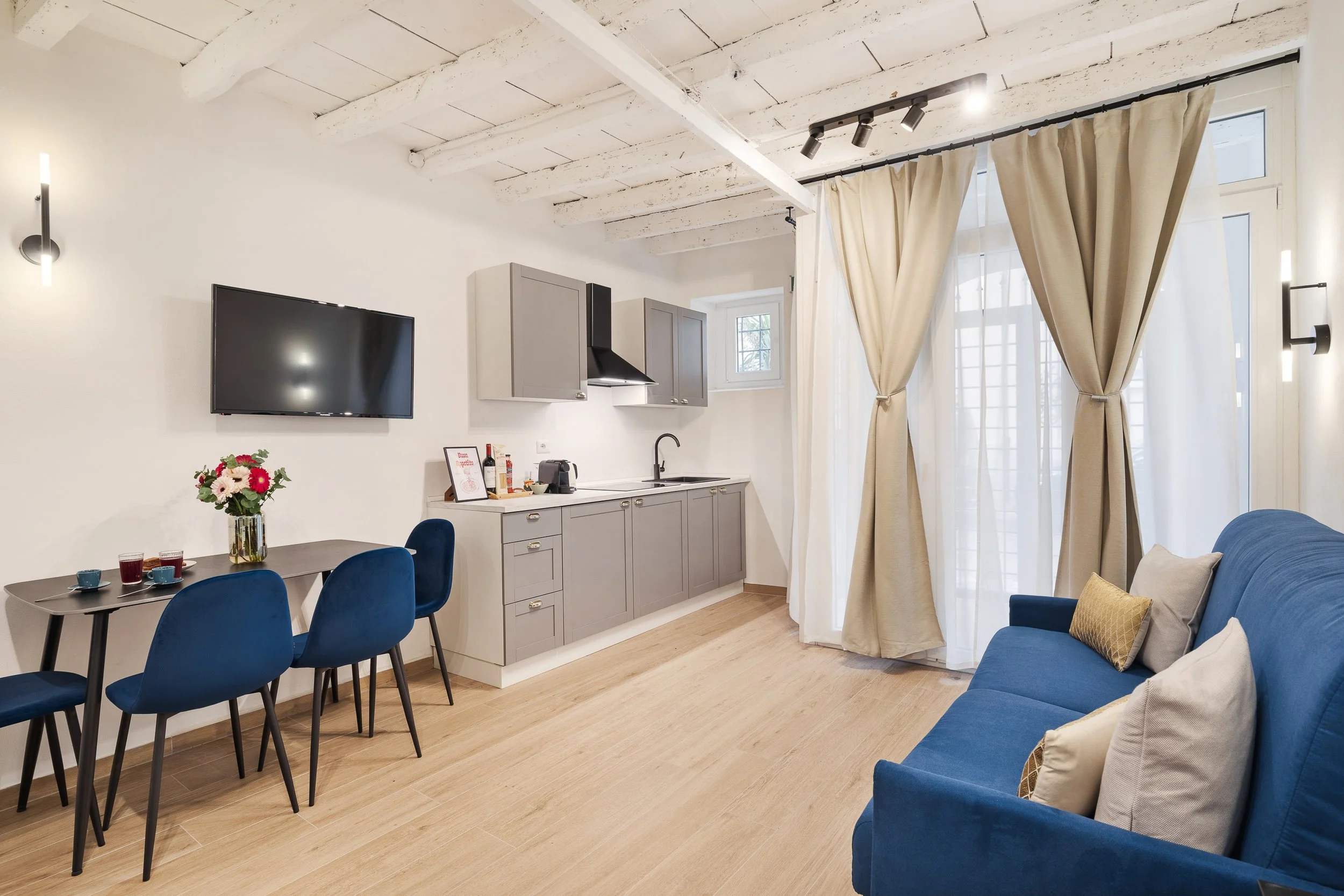 Gli appartamenti offrono un’alternativa accogliente e funzionale ai soggiorni in hotel: ognuno è dotato di cucina, zona giorno e bagno privato, così puoi cucinare, rilassarti e vivere la tua esperienza con totale autonomia, come se fossi a casa.